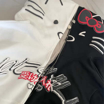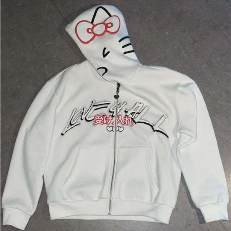 Experience the perfect blend of childhood memories and modern style with our Hello Kitty Zip-Up Hoodie. Embrace the iconic charm of Hello Kitty while staying effortlessly fashionable.