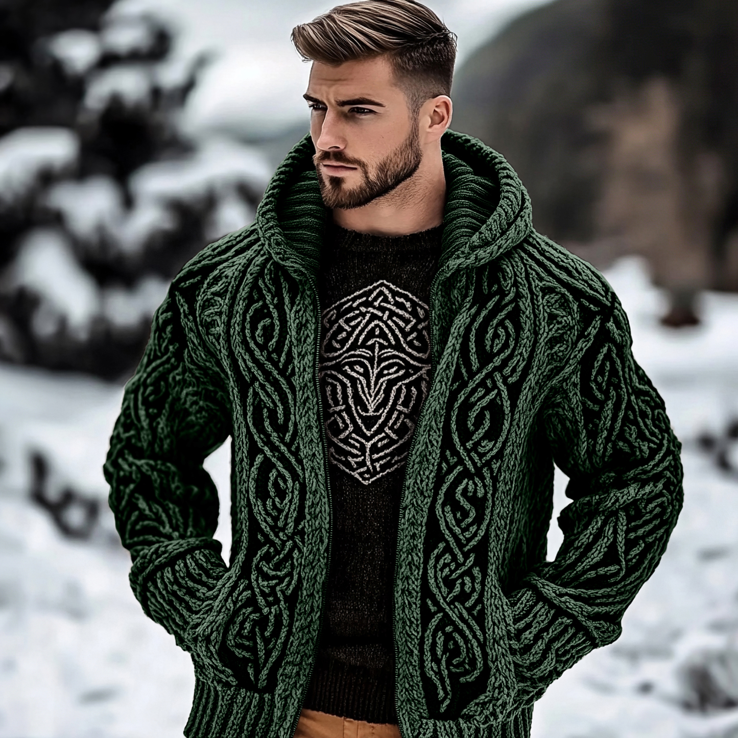 Men's Viking Kyle Style Extra Thick Hooded Zip-up Sweater