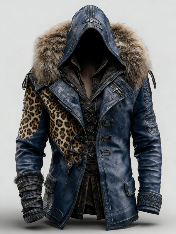 MEN'S WINTER LEOPARD PRINT WARM AND STYLISH FUR LEATHER JACKET 8937