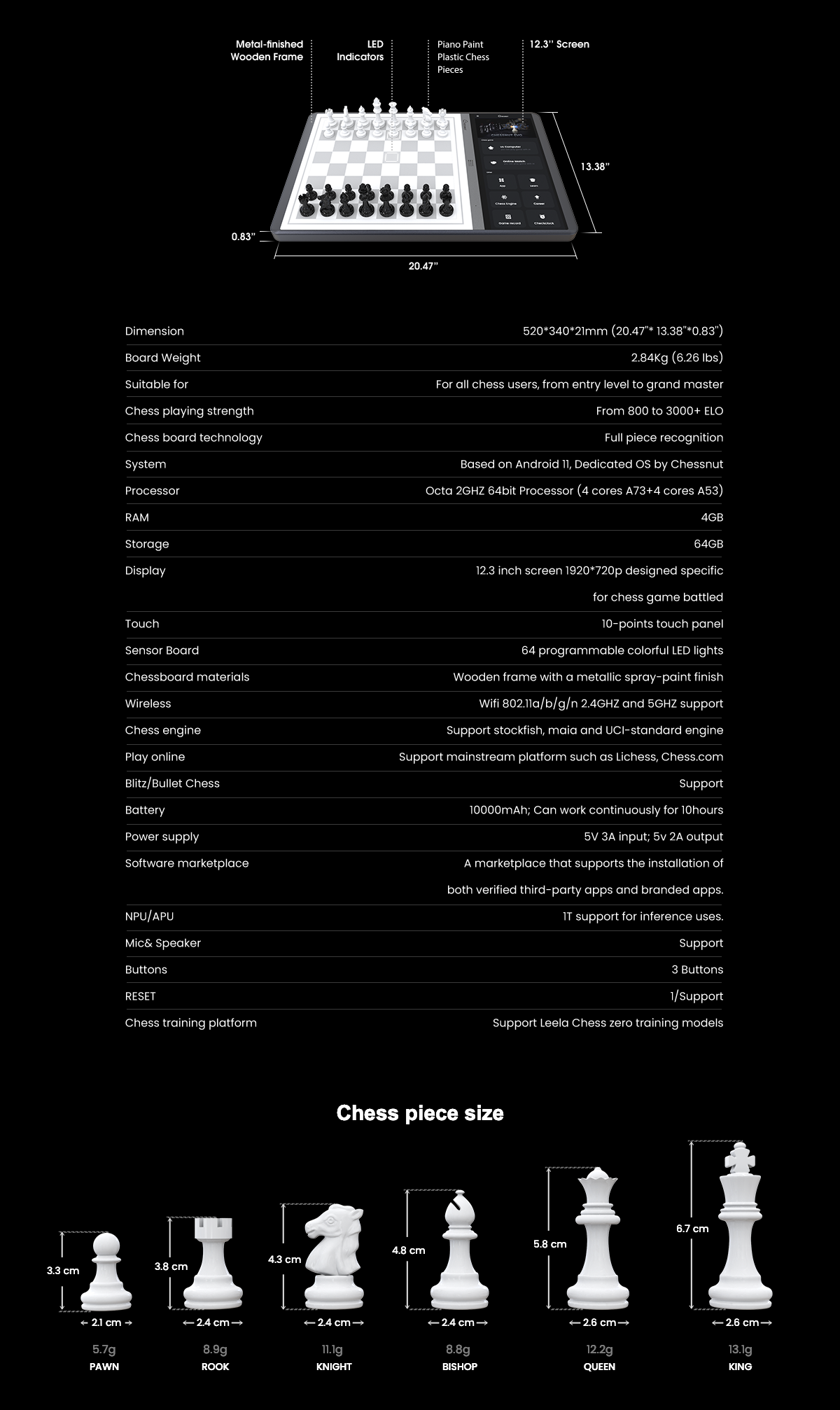 5.Colorful LED and Accurate Piece Recognition: Enhance gameplay and analysis with vibrant LED lights and precise piece recognition.