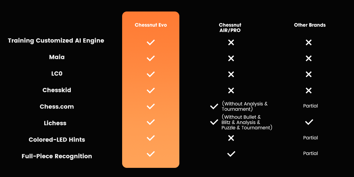 We have currently implemented integration with three platforms: Chess.com, Lichess and ChessKid.Unlike the approach taken in the Air/Pro app, Evo, powered by Chessnut Vision technology, supports a wider range of platforms and game modes, providing you with an enhanced experience. Our next step is to integrate with Chessable. We welcome your suggestions for further improvements, and we will prioritize training and adapting Chessnut Vision AI to the websites that receive more user demand.